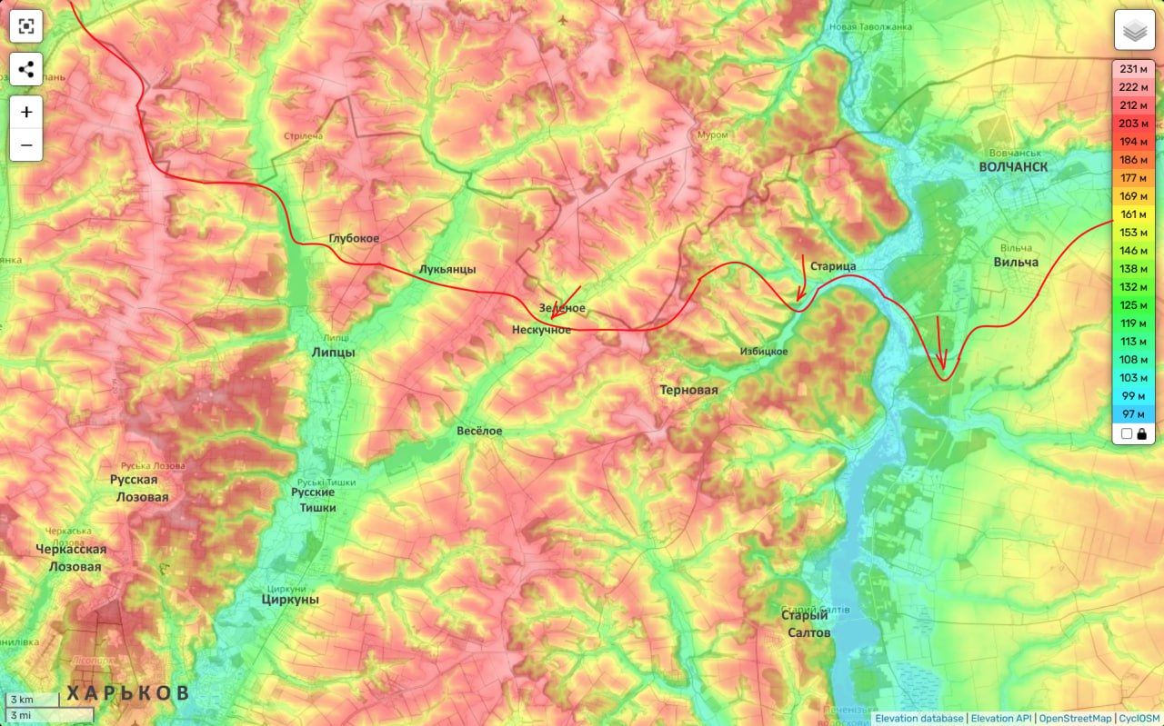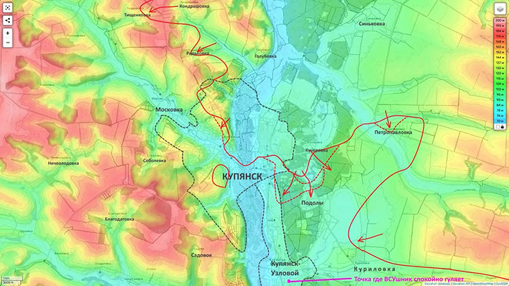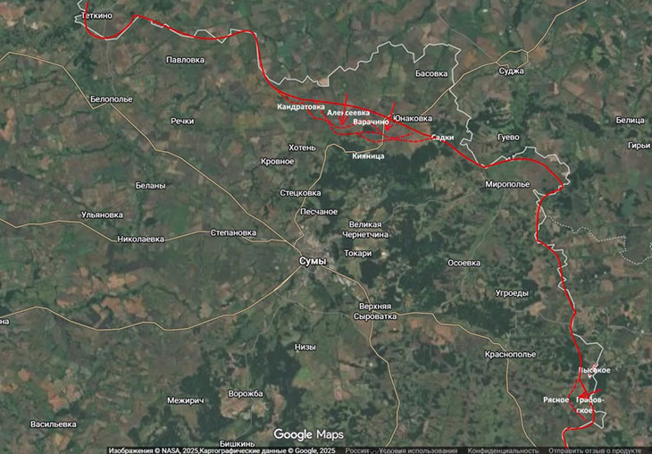 https://t.me/yurasumy На Боровском направлении пытаемся отрезать группировку противника от сухопутного снабжения, прижав ее к переправам через Оскол. На Боровском направлении есть продвижение к Коровьему Яру. https://t.me/yurasumy Купянск-Узловой. Вопросы по контролю сняты, противник сам выложил видео из центра. Но бои идут на его северо-восточных окраинах и в Подолах, где мы контролируем северную часть, а в центре – чересполосица. Параллельно созданы проблемы для гарнизона в Петропавловке, чтобы выровнять линию фронта. https://t.me/yurasumy Очень интересно развивается ситуация на Большебурлукском выступе. Наши наступают из Волчанска на юг, вдоль Северского Донца, двигаясь на Лосевку и, возможно, Бугаевку, чтобы зайти во фланг, а далее в тыл позициям противника в районе Белого Колодца. Одновременно восточнее мы практически окружили Хатнее, которое уже охватили с трех сторон. А это всего 6 км от Шевченково – первого села в цепи сплошной застройки, ведущей к Большому Бурлуку. Зимой зацепиться за такой крупный населенный пункт – огромное преимущество. Ясно, что удары из Волчанска и на Хатнее имеют общий замысел – охват в кольцо Большого Бурлука и Белого Колодца. Очень надеюсь, что у "Севера" здесь все получится. Ну и Сумское направление. Здесь ряд тактических успехов, как на юге области, так и севернее, в Ямпольском районе. На Сумском направлении идут бои в районе н. п. Садки. Пытаемся сжать противника. Но, повторюсь, это во многом работа на растягивание вражеских резервов, чтобы не дать им сконцентрироваться на главных направлениях.