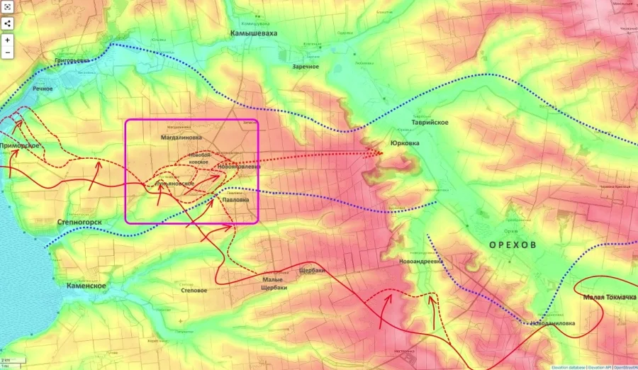 Картина складывается методичная и уверенная. После освобождения Новобойковского, как пишет Подоляка, наши части продвинулись между двумя линиями обороны ВСУ, создав перспективу выхода на Юрковку. Практически зачищено Приморское, вышли к Речному. И вот здесь важный момент: вплотную подошли к реке Конка, за которой — Григоровка. Сам факт этого приближения к серьезной водной преграде, как отмечает Подоляка, ставит украинское командование перед тяжелой дилеммой. Он оценивает вероятность нашего форсирования и удара дальше, в сторону Запорожья, как вполне реальную. Это вынуждает противника метаться, гадая, куда бросать последние резервы — под Орехово или под Запорожье.